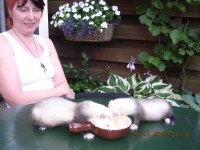 ![]() ![]() ![]() Na de 4daagse van Nijmegen, een andere hobby van ons, toen we onze fretjes