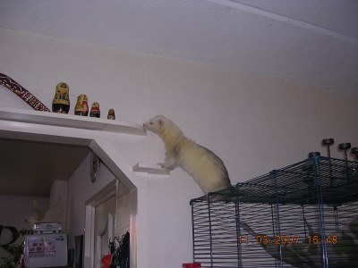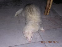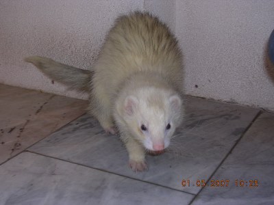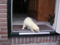 Grisou is terug. Een lieve dame heeft hem gisteravond na elf uur bij haar huis zien lopen, en hem binnengelaten en de dierenambulance gebeld. Voordat we vanmorgen weg zouden gaan heb ik de dierenambulance gebeld om te zeggen dat we alleen mobiel bereikbaar zouden zijn, en toen kreeg ik te horen dat er een fret was gevonden. Wat een opluchting, ik dacht echt dat hij dood zou zijn. Hij is toch 24 uur aan het zwerven geweest. Ik hoorde dat hij bij die dame ook heel veel kattenbrokjes heeft gegeten.