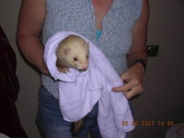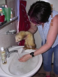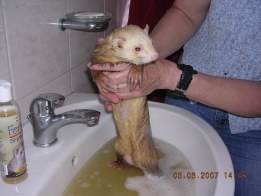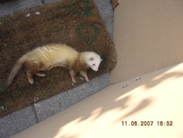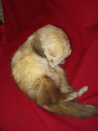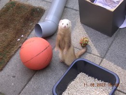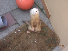Het is inmiddels Februari 2009. Bo-Gyi heeft zich ontwikkeld tot een echte knuffelfret. Als je hem oppakt, dan duwt hij zijn kopje tegen je aan. Hij vindt het heerlijk als je hem achter zijn oren, en in zijn kleine speknekkie kroelt.